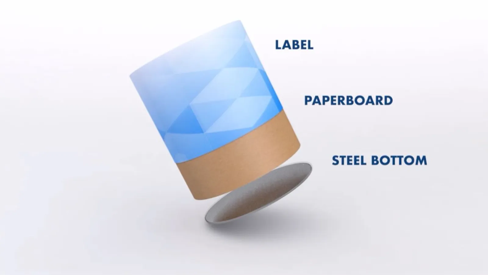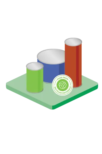O corpo do recipiente de papelão é feito 100% de fibra reciclada, sendo 90% dela proveniente de fontes pós-consumo aceitas em fluxos de resíduos de aço e fibra. Latas de papel com aço são uma alternativa de embalagem ambientalmente responsável.