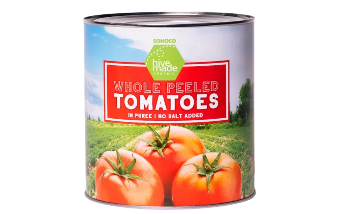 As latas de metal de duas e três peças da Sonoco são ideais para uma ampla variedade de produtos alimentícios, incluindo carne, feijão, produtos agrícolas e leite líquido ou evaporado.